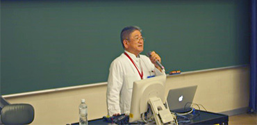 付属病院(伊勢原)から付属各病院へも同時放映システムを用いて放映され、臨床研修医は各研修病院で受講しました。