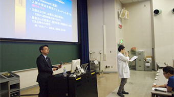 付属病院(伊勢原)から付属各病院へも同時放映システムを用いて放映され、臨床研修医は各研修病院で受講いたしました。