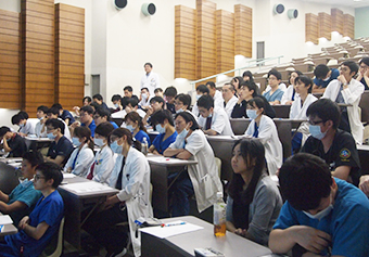 付属各病院へは付属病院(伊勢原)から同時放映システムを用いて放映され、臨床研修医は各研修病院で受講しました。