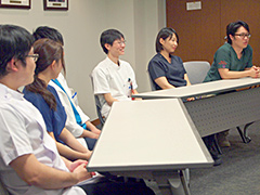 佐藤:臨床研修医1年目、大分大学出身の佐藤翔太です。横浜で育ちました。内科系志望なのですが、呼吸器内科を回り始めて、今、2週間なのですが、6人の患者さんが亡くなり、精神的に病みそうな感じです。内科系でも呼吸器は自分に合ってないのかなと思いつつ、あと一ヵ月半がんばろうと思っています。